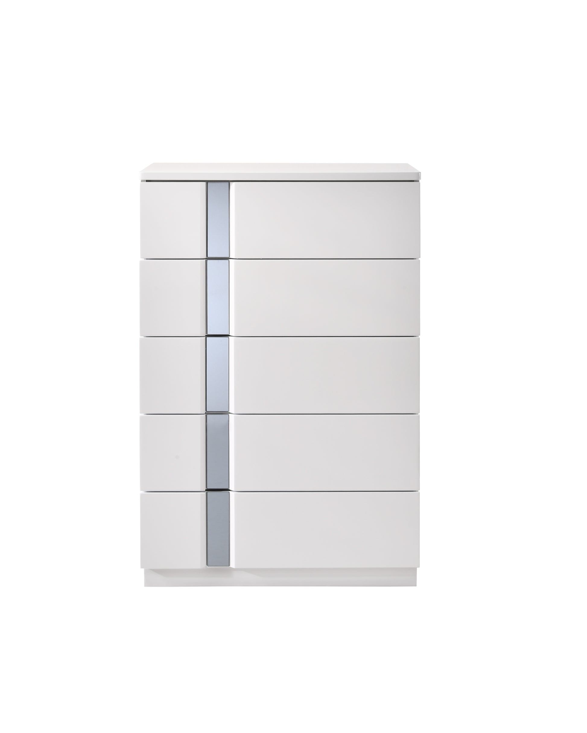 Detail oriented White Lacquer on Chrome. The Palermo Bedroom adds a bold contemporary vibe to your sleep space. Featuring clean horizontal lines and lightedheadboard provide a modern look that