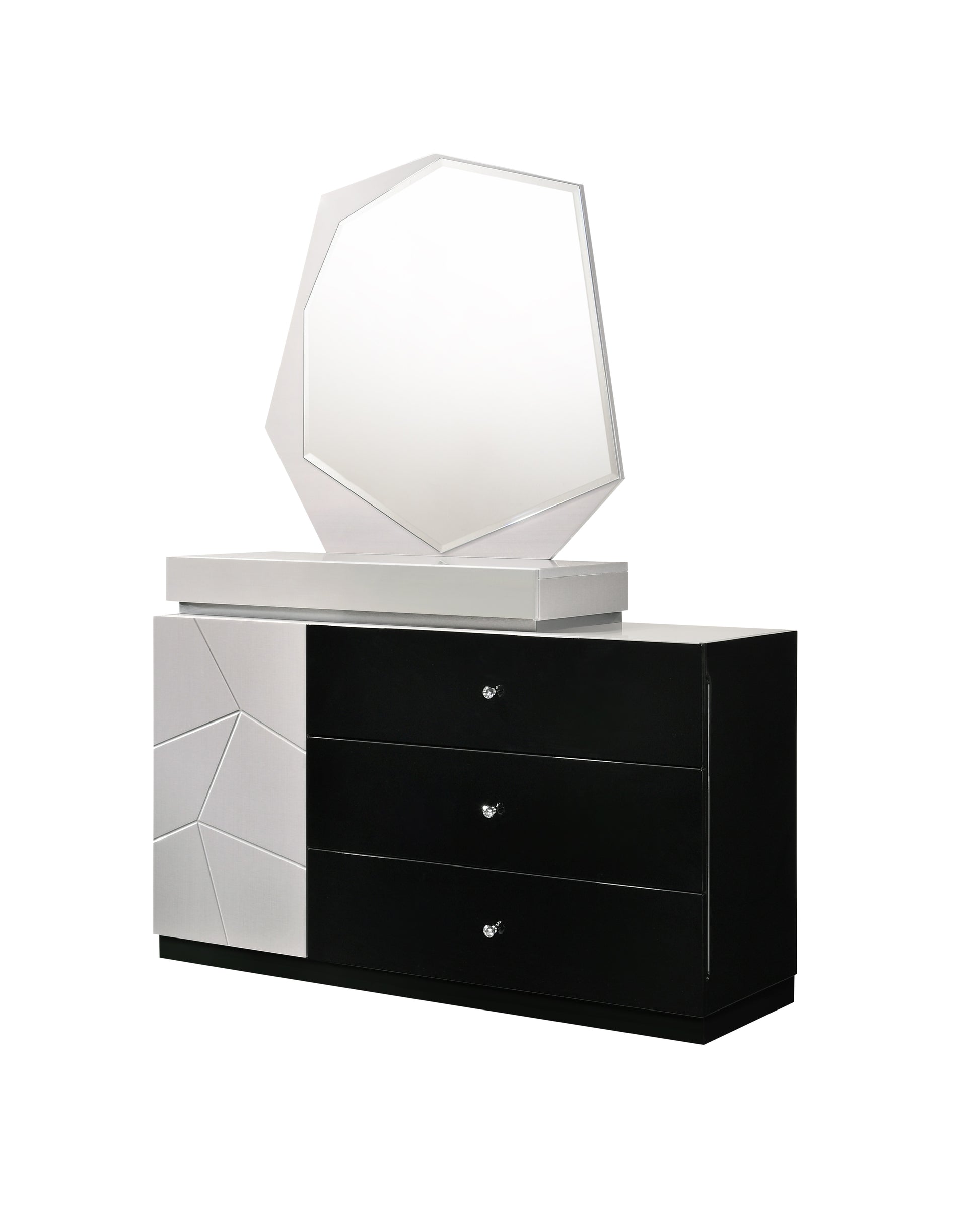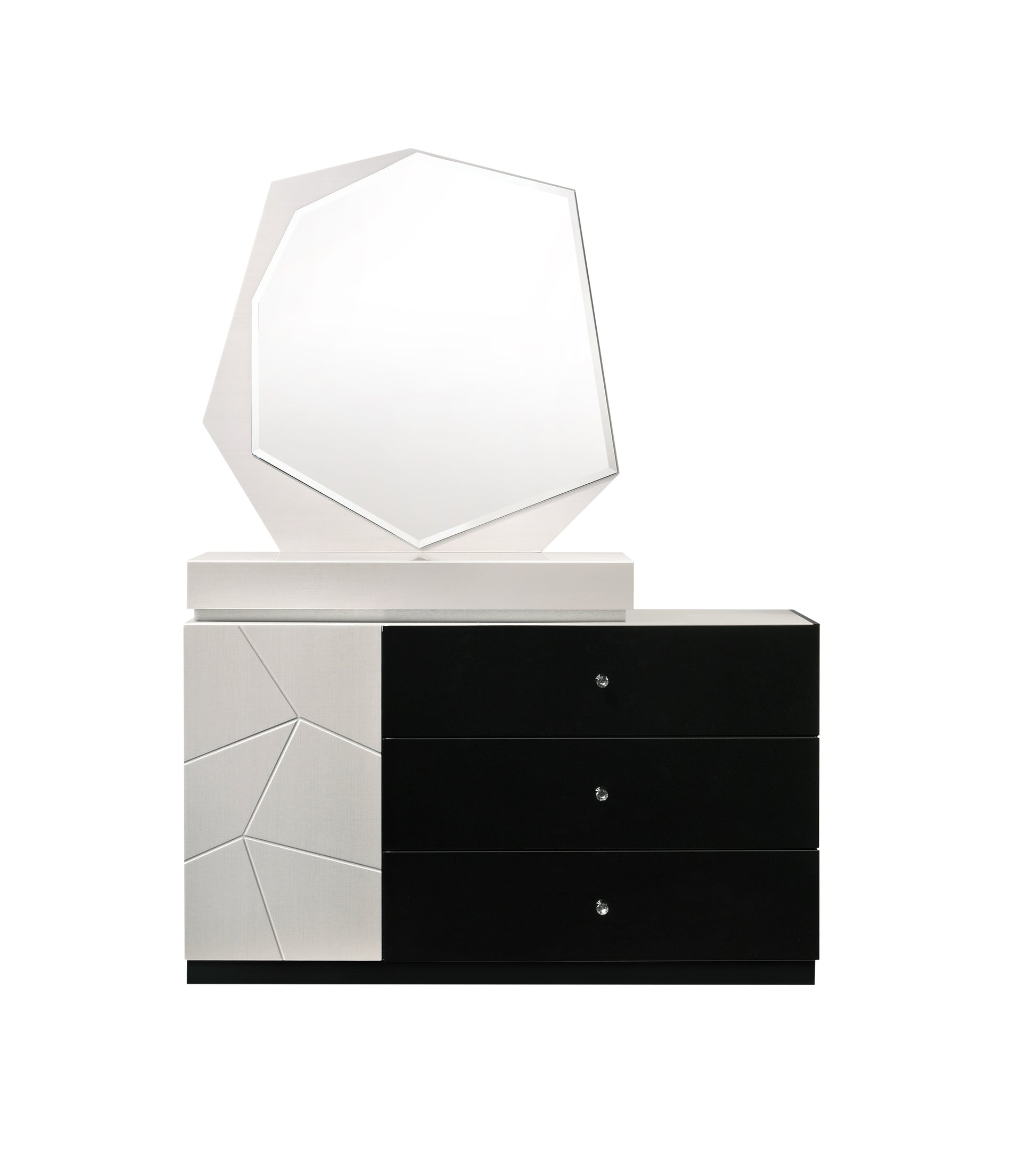 A fresh perspective on modern furniture. The Turin Bedroom adds a charming combination of light grey and black lacquer & uniquely designed headboard that features led lighting. The case goods feature sophisticated design, as well as incredibly crafted details to add a subtle touch of elegance.