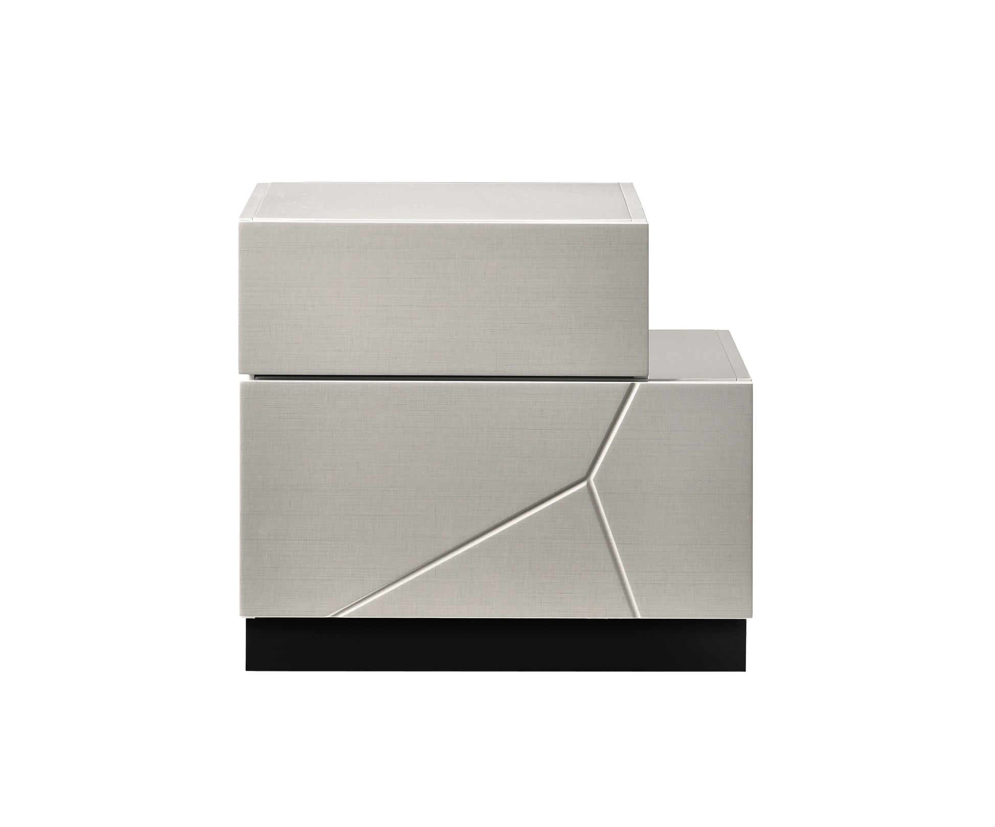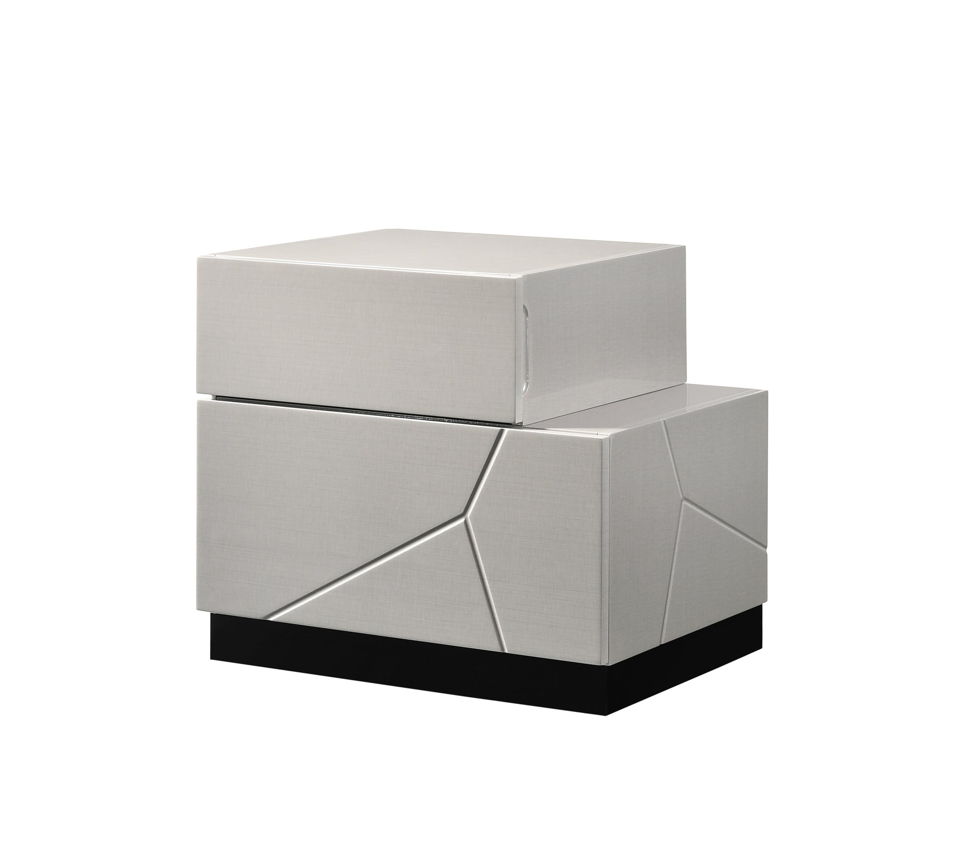 A fresh perspective on modern furniture. The Turin Bedroom adds a charming combination of light grey and black lacquer & uniquely designed headboard that features led lighting. The case goods feature sophisticated design, as well as incredibly crafted details to add a subtle touch of elegance.