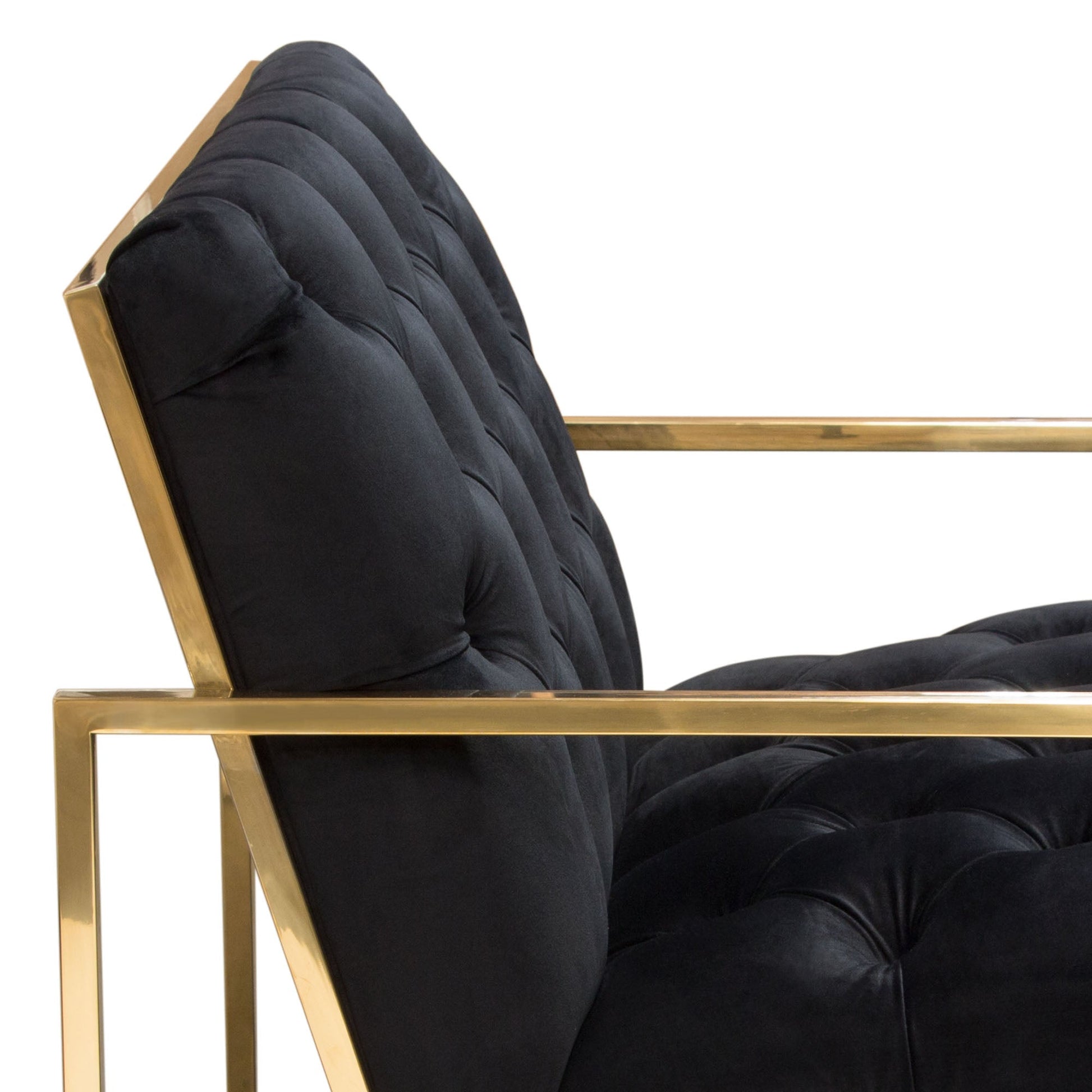 Luxe Accent Chair in Black Tufted Velvet Fabric with Polished Gold Stainless Steel Frame by Diamond Sofa