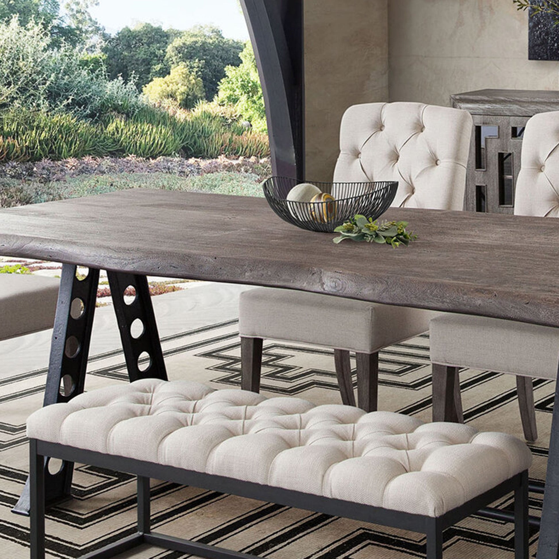 - Deep Tufted Bench Seat in Desert Sand Linen Finish