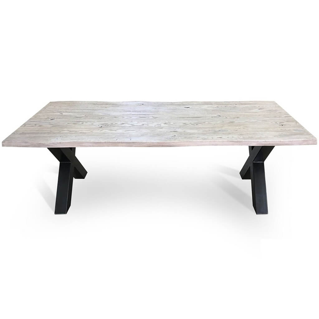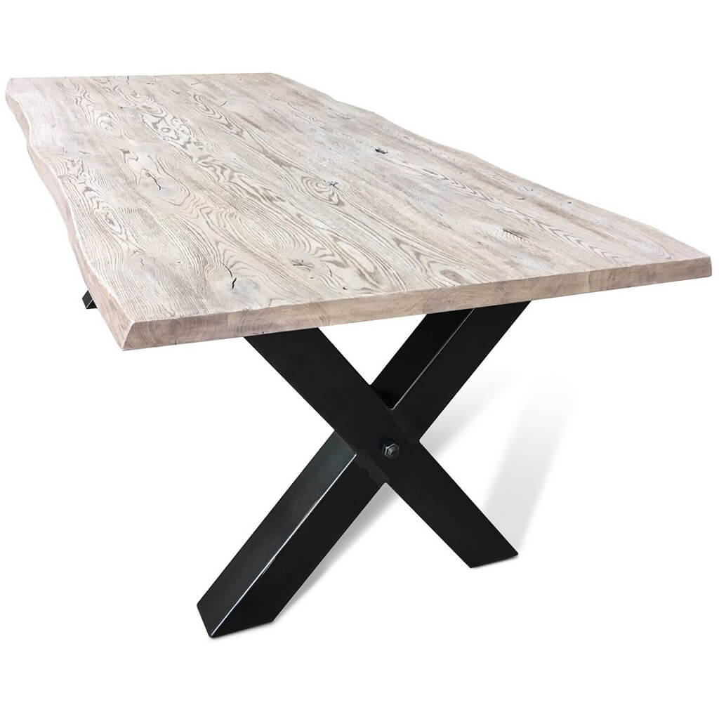 Solid Oak Wood, Metal X-shaped Legs