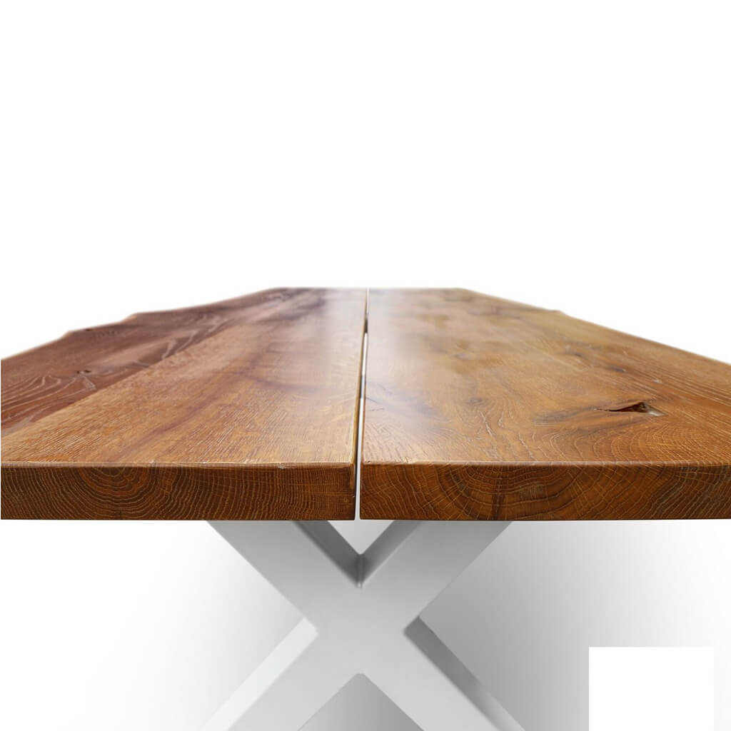 Solid Oak Wood, Metal X-shaped Legs