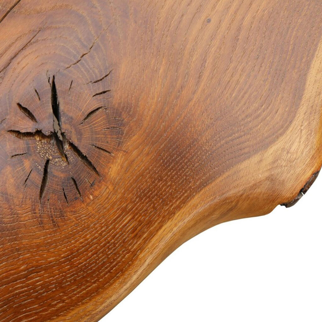 Crafted from live edge oak wood, each table boasts a unique grain pattern and showcases the knots and natural wood imperfections that make it truly one-of-a-kind. The wood has been lovingly treated with German oil, ensuring its protection against everyday stains and spills.