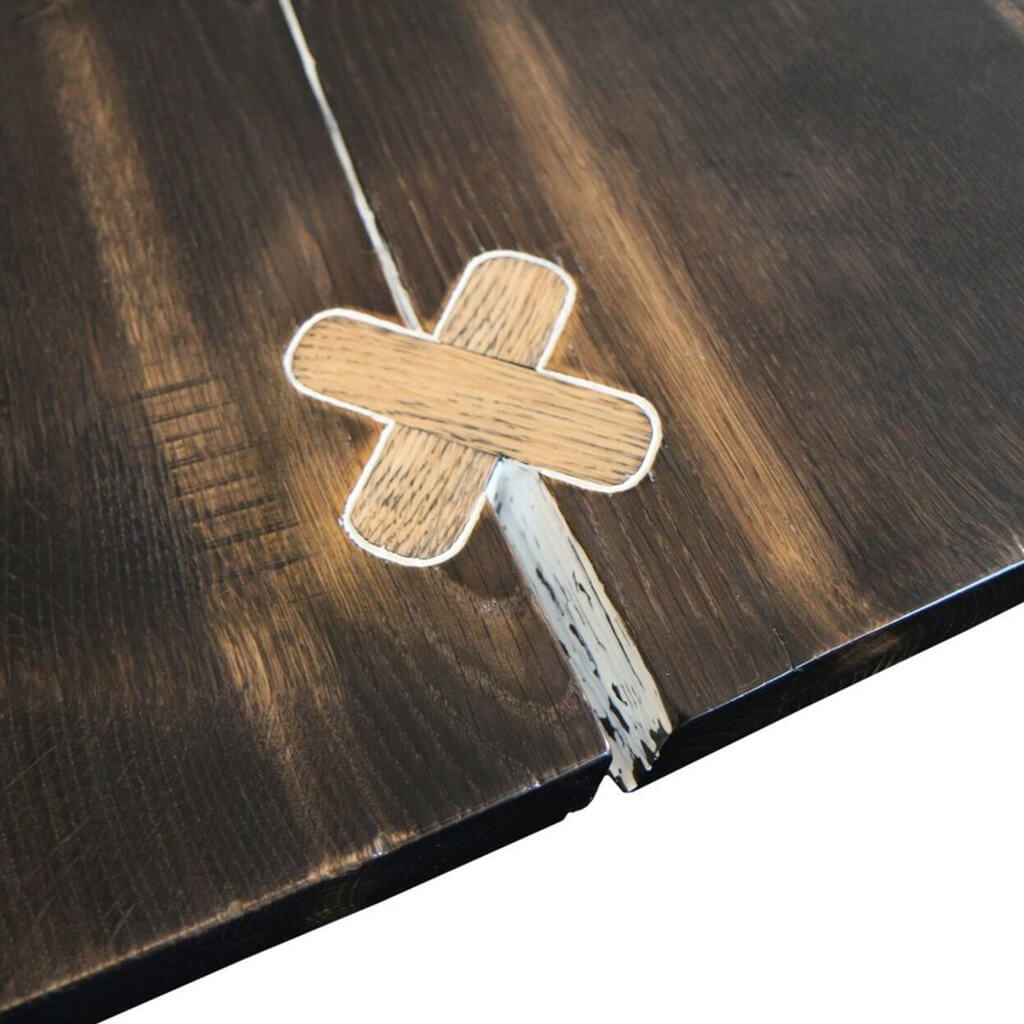 Wood was impregnated with German oil, which protects the wood against dirt, coffee and water stains.