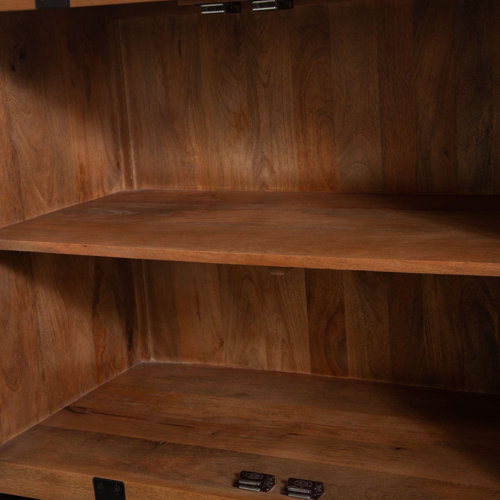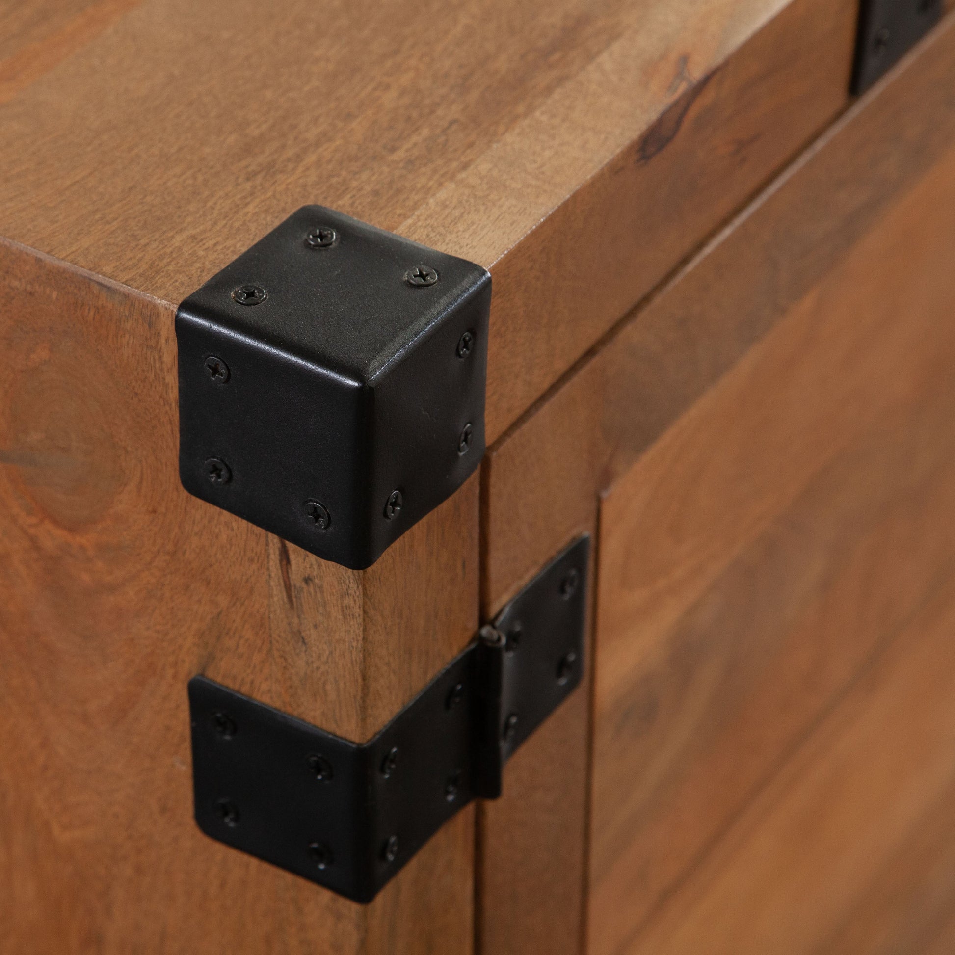 Oxford Solid Mango Wood 4-Door Sideboard in Oak Finish w/ Black Metal Bracket by Diamond Sofa