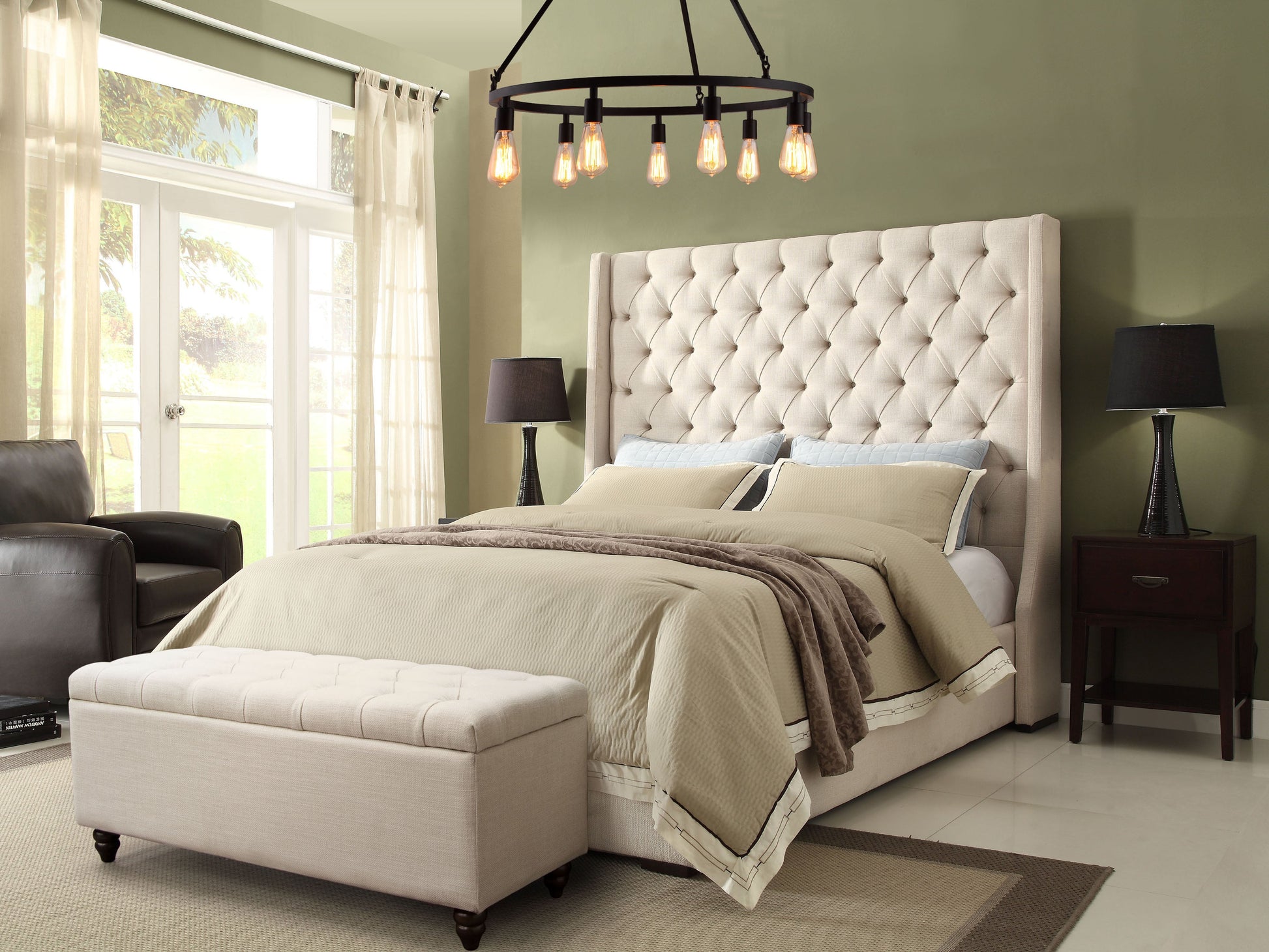 Park Avenue Eastern King Tufted Bed with Vintage Wing in Desert Sand Linen by Diamond Sofa