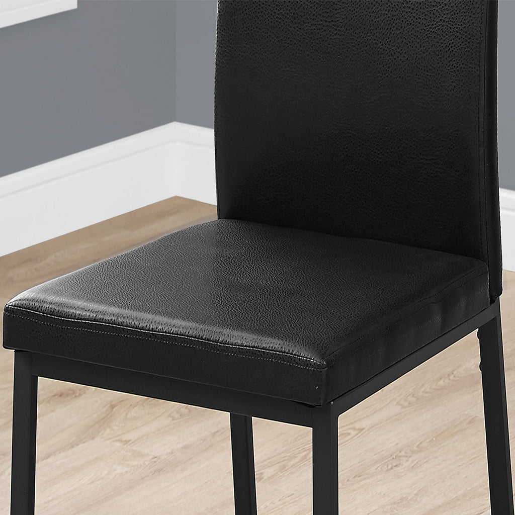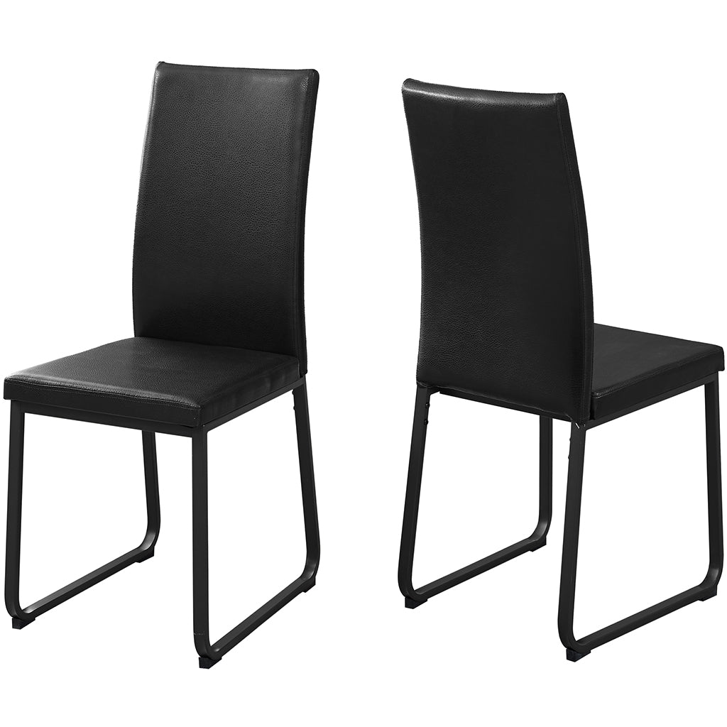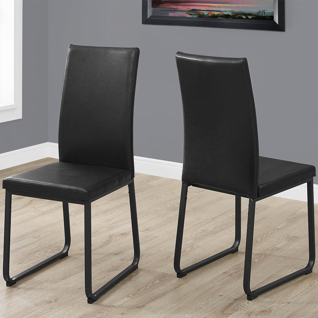Set of 2 Dining Chairs, Black Faux Leather, Metal Frame