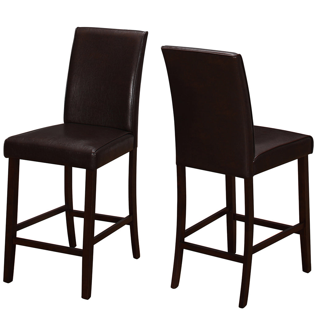 Set of 2 Dining Chairs, Brown Faux Leather, Wood & MDF Frame