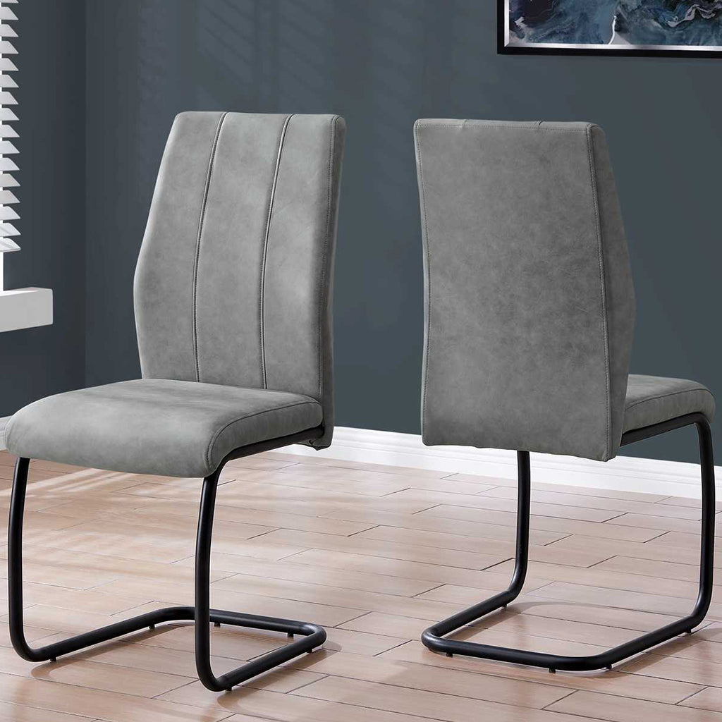 Set of 2 Dining Chairs, Gray Fabric, Black Metal Frame