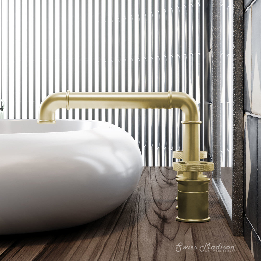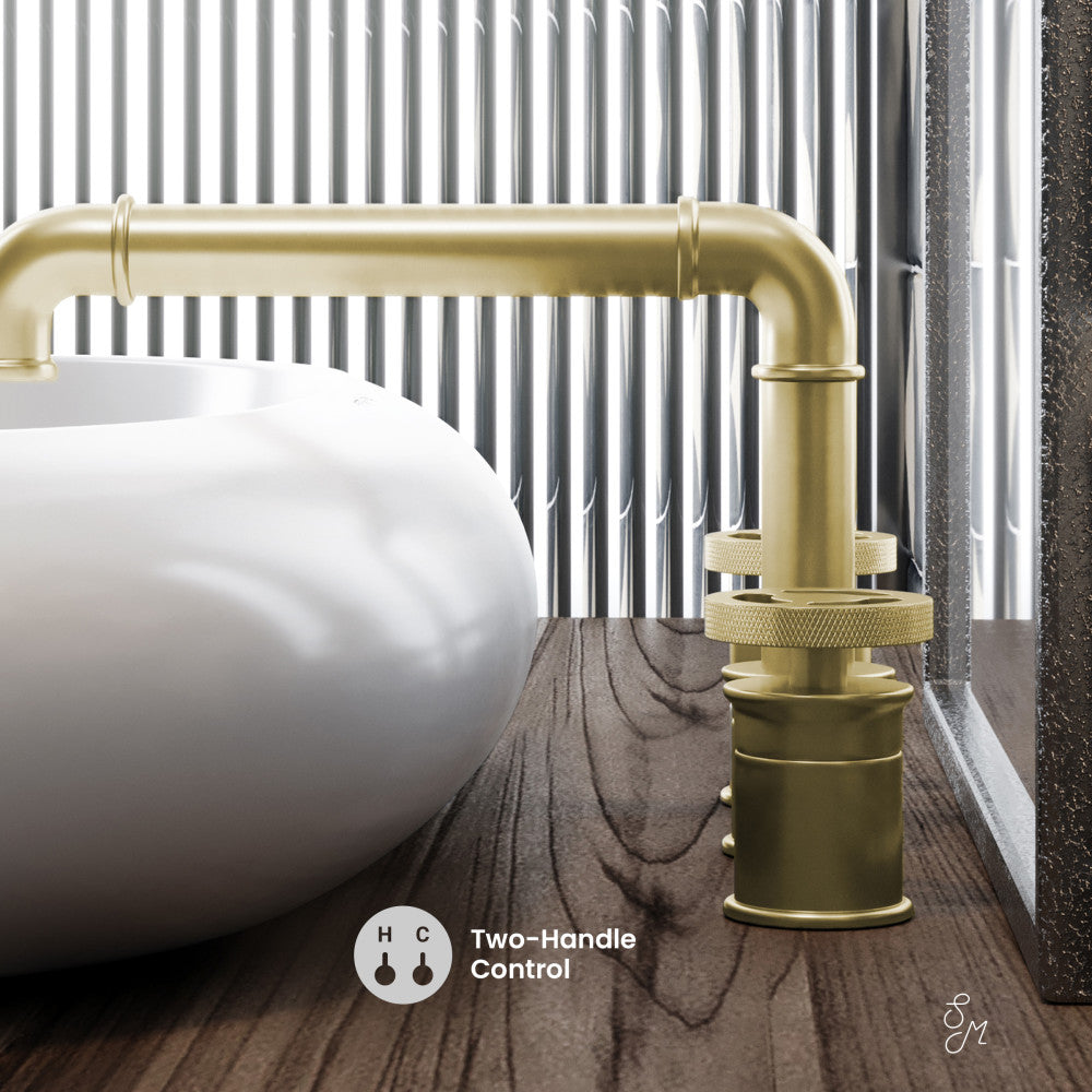 Explore the Avallon collection, where rustic charm and contemporary aesthetics merge to create a warm and inviting atmosphere. Redefine elegance in your bathroom with our widespread faucets with a timeless design and dual control. Offered in brushed gold.