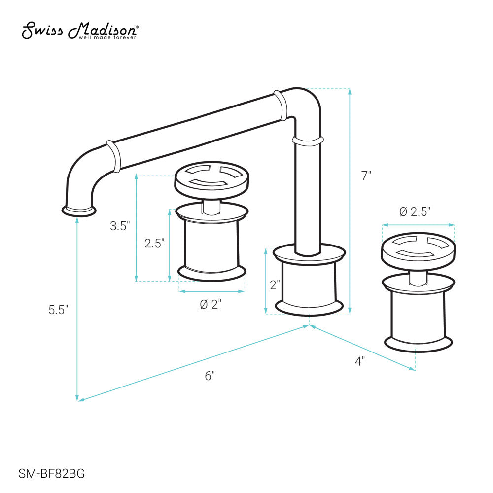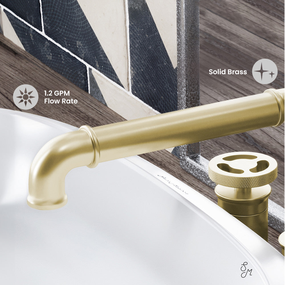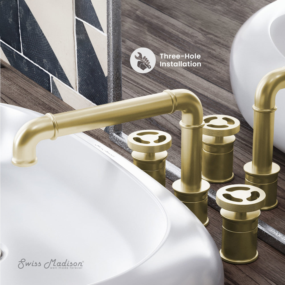 Swiss Madison Avallon 8 in. Widespread, 2-Handle Wheel, Bathroom Faucet in Brushed Gold