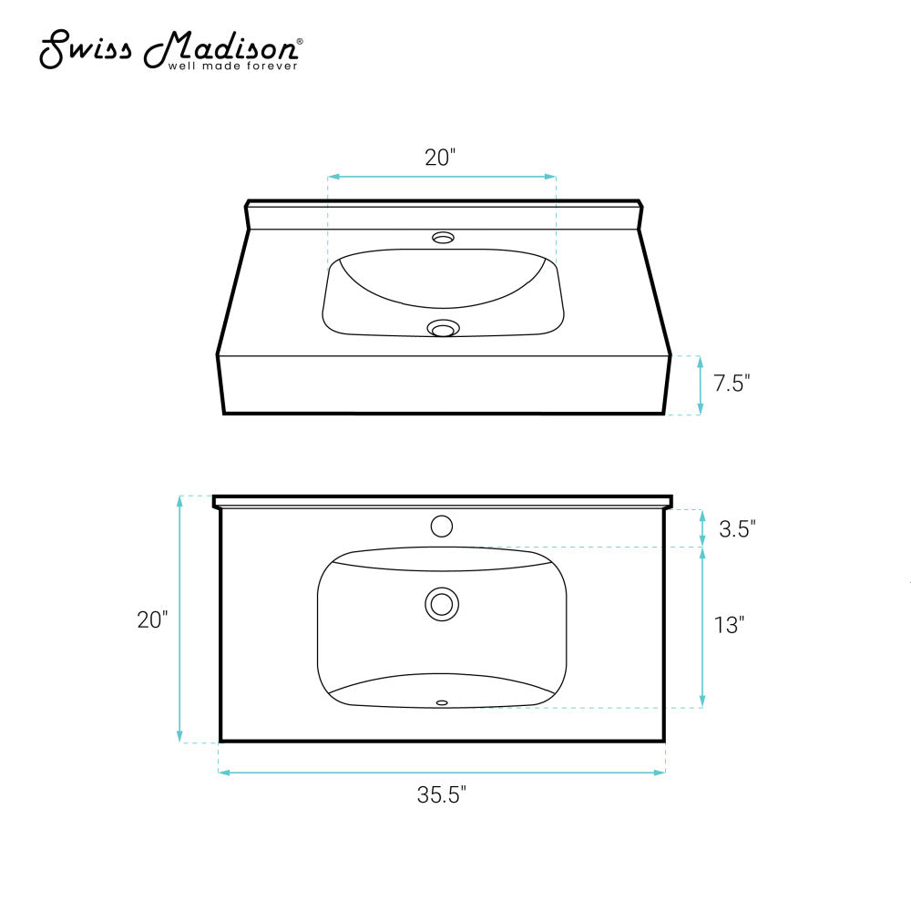 Dimensions: 35.5"W x 20"D x 7.5"H