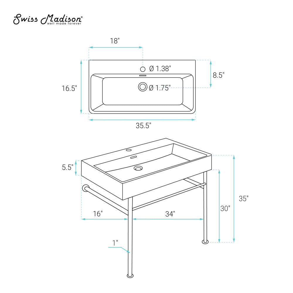 Swiss Madison Carre 36 Ceramic Console Sink White Basin Brushed Gold Legs