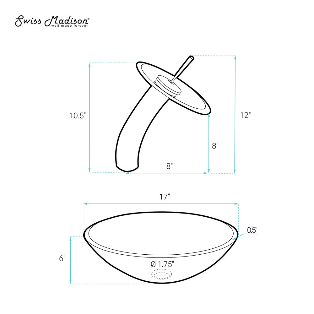 Swiss Madison Cascade 16.5 Glass Vessel Sink with Faucet, Clear