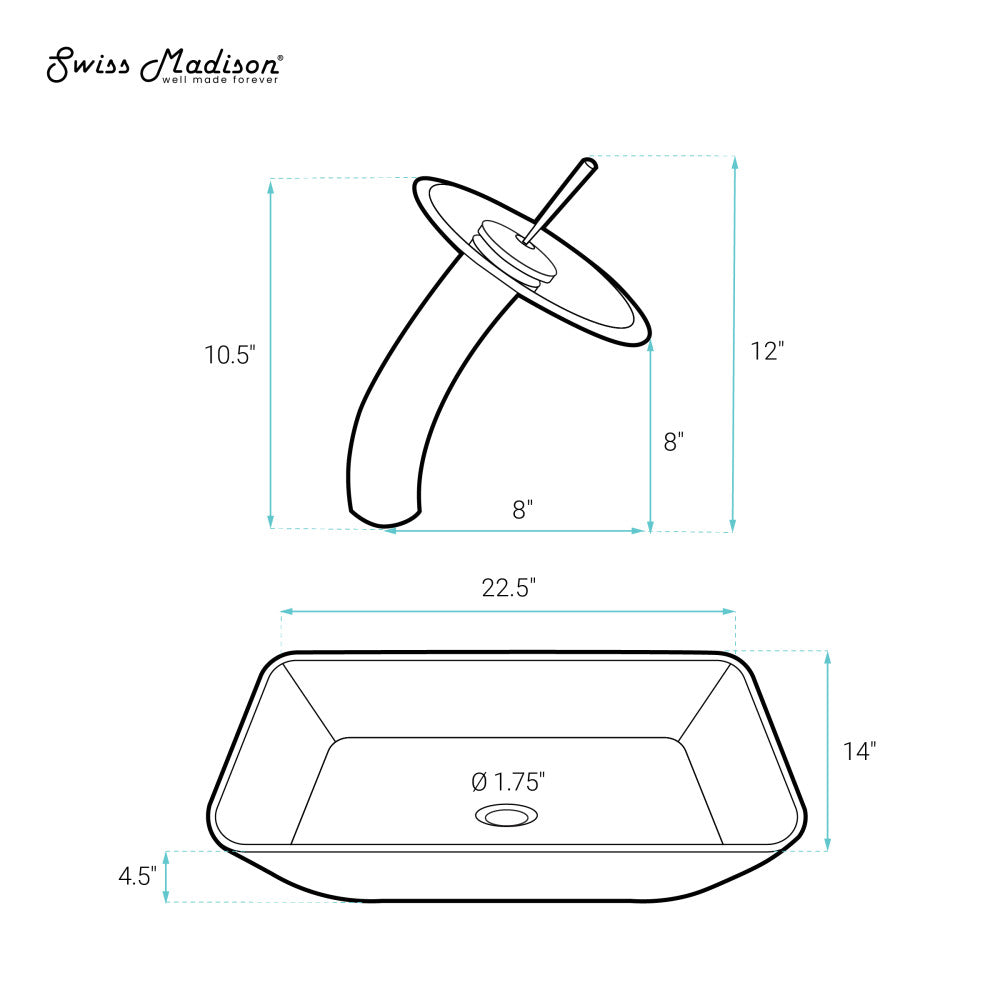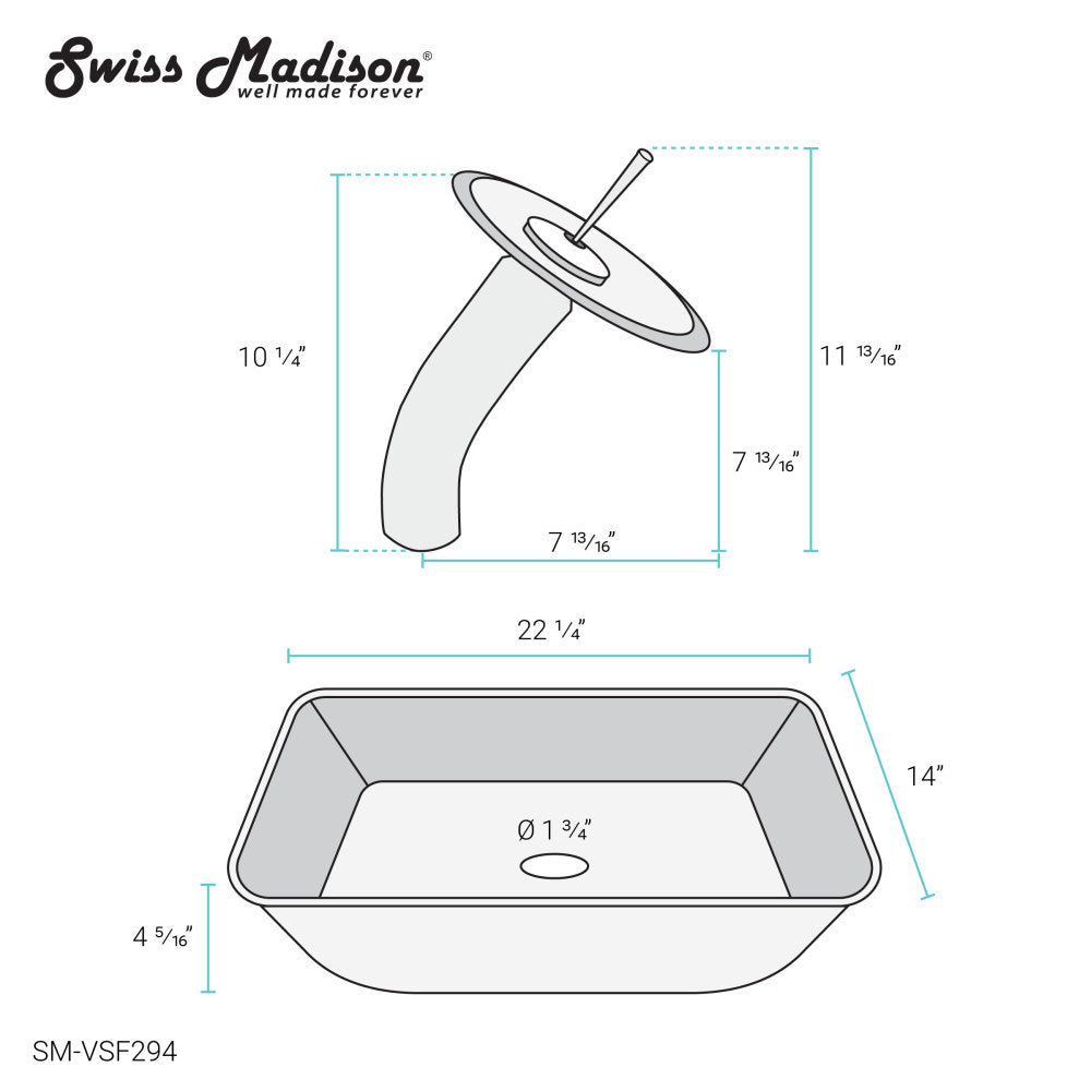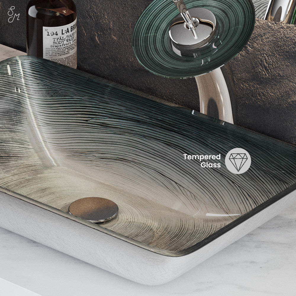 Swiss Madison Cascade Rectangular Glass Vessel Sink with Faucet, Smoky Grey