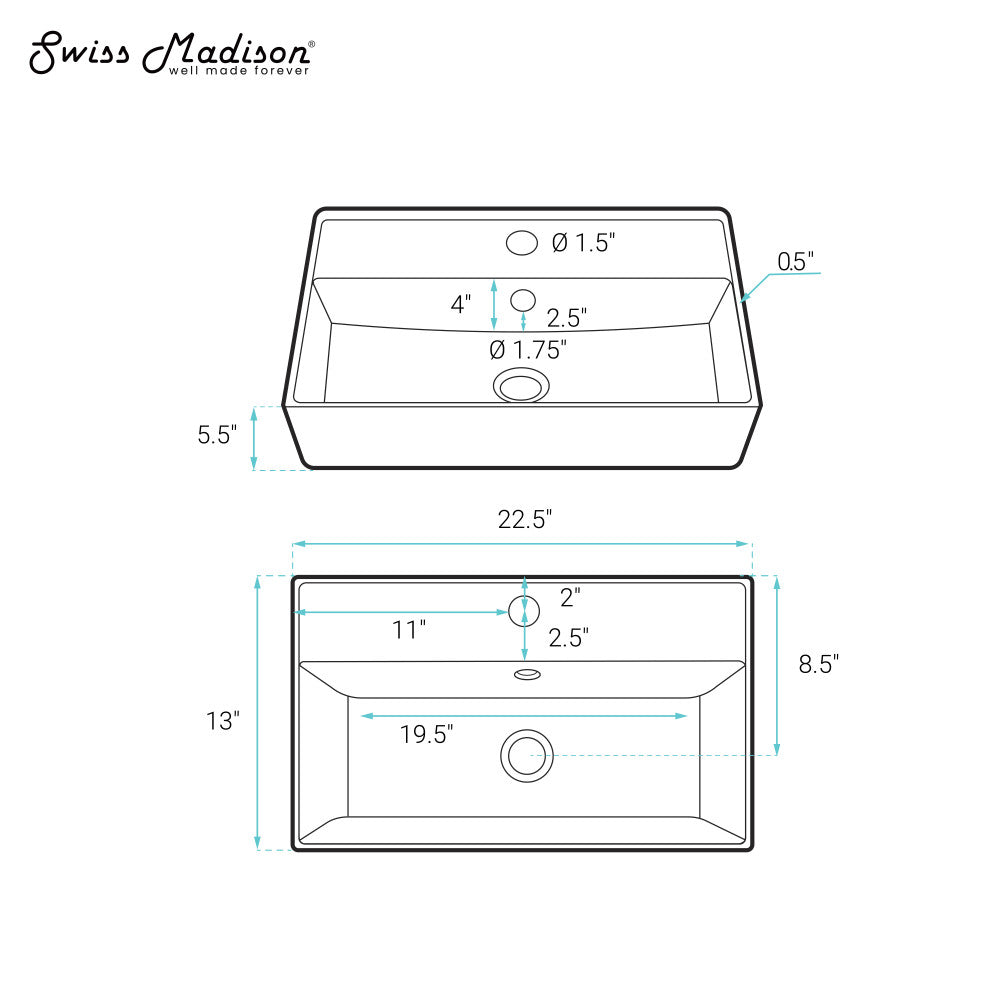Swiss Madison Claire 22" Rectangle Wall-Mount Bathroom Sink