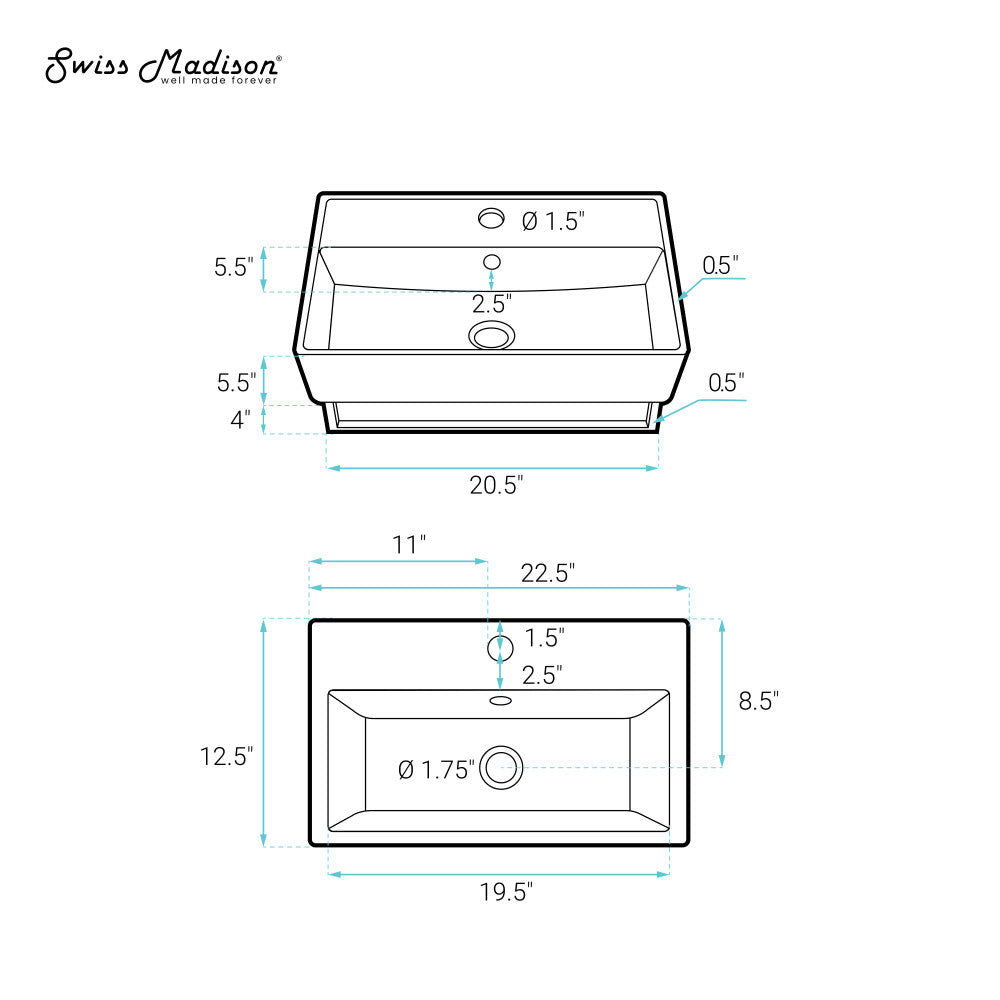 Dimensions: 22.5"W x 12.5"D x 5.5"H