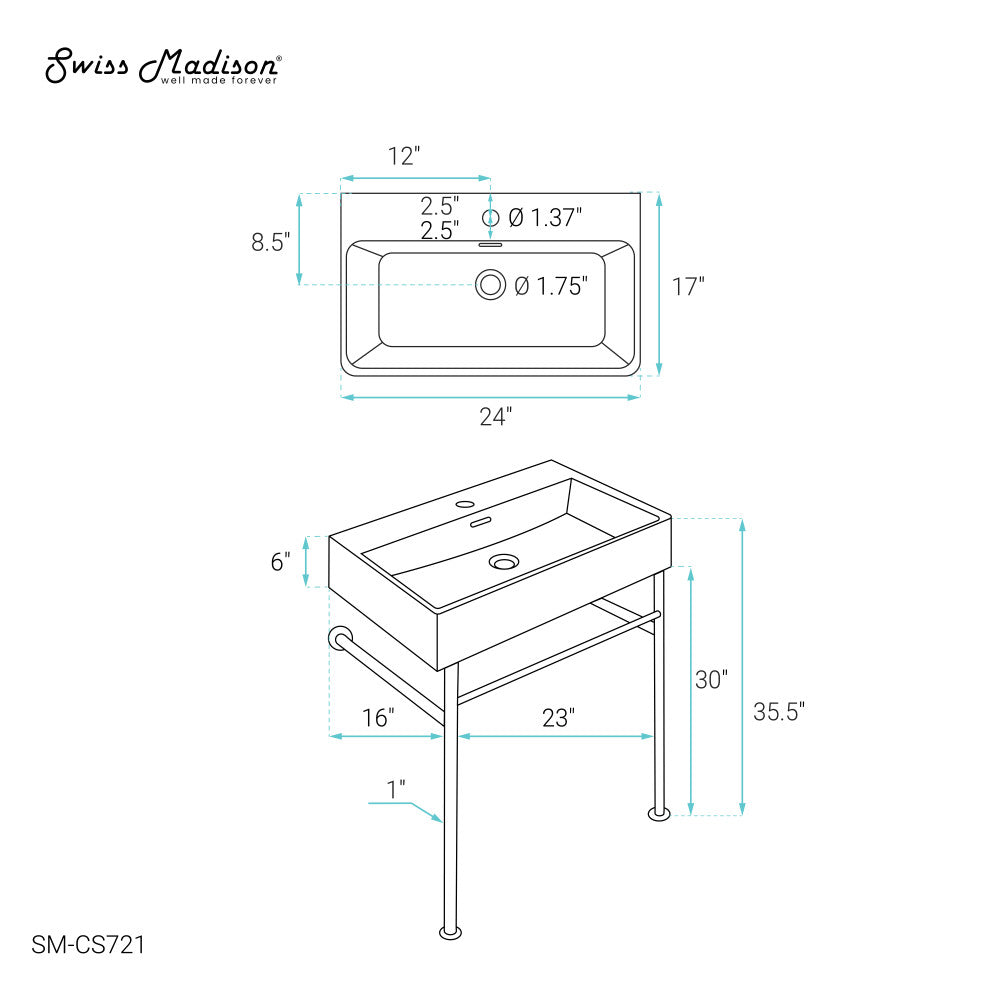 Swiss Madison Claire 24 Ceramic Console Sink White Basin Gold Legs