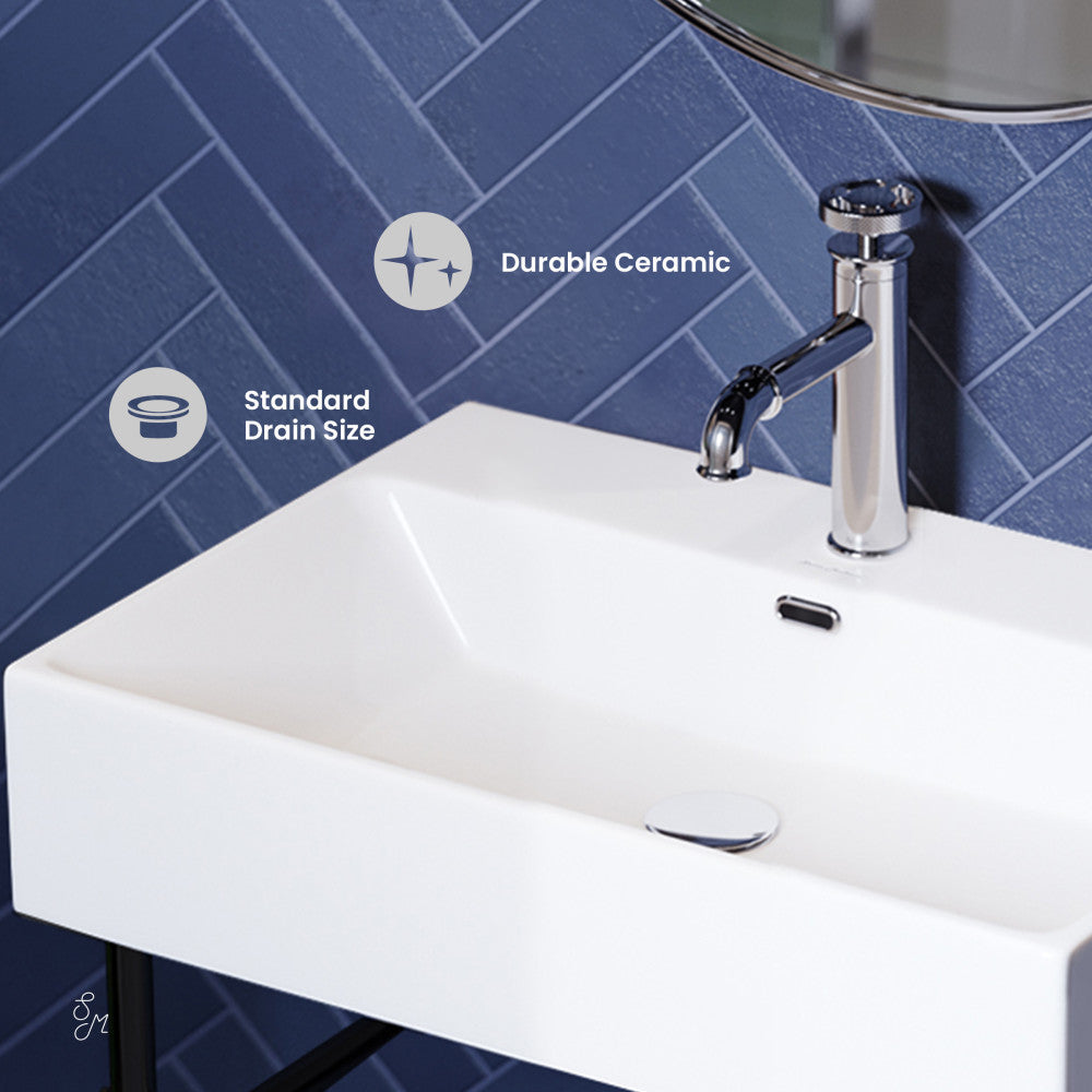 Overflow: Equipped with an overflow that offers easy installation, spill prevention, and space-saving properties.