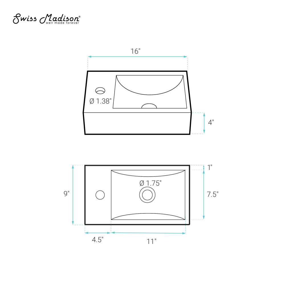 Swiss Madison Lisse 16" Concrete Rectangle Wall-Mounted Sink with Left Side Faucet Mount in Matte White