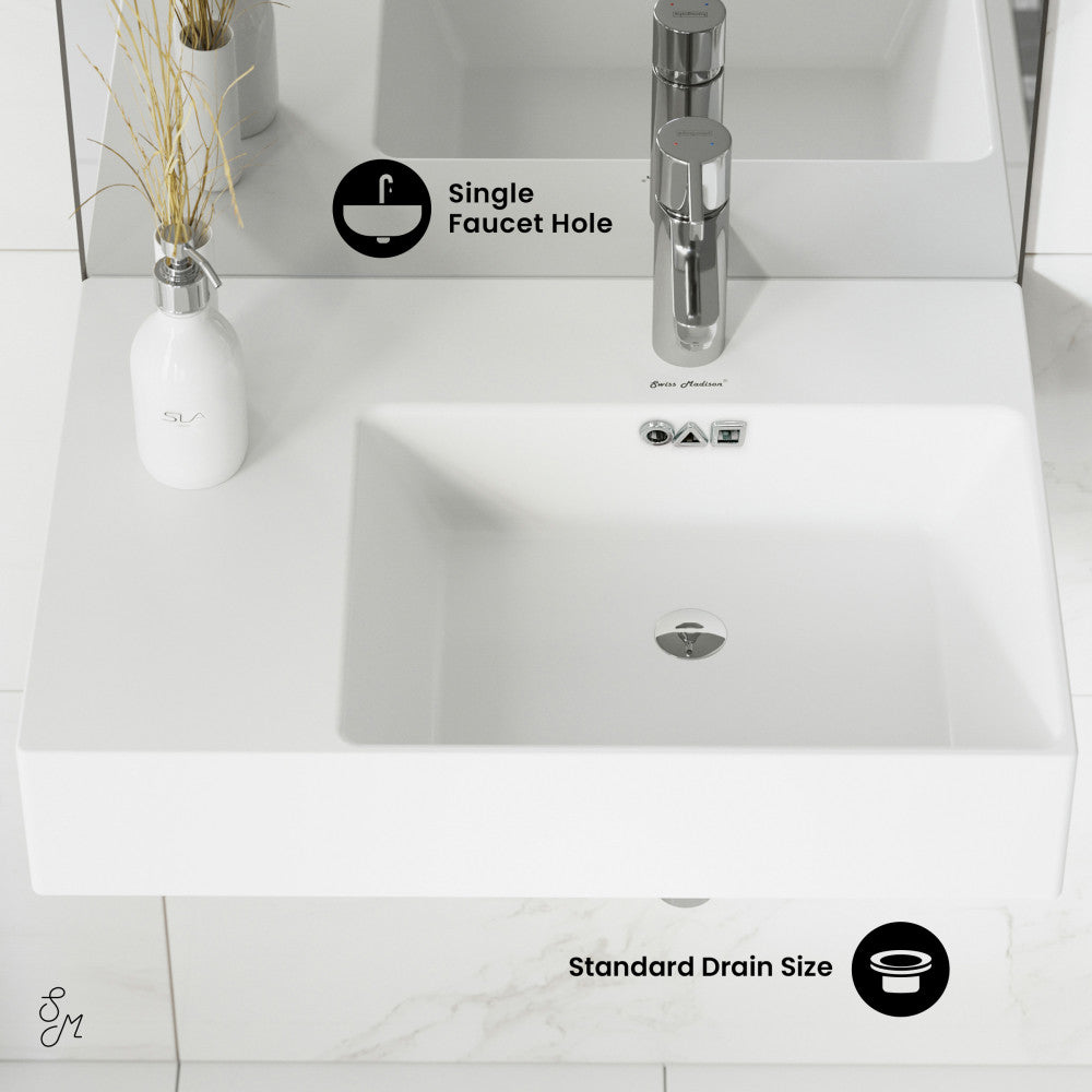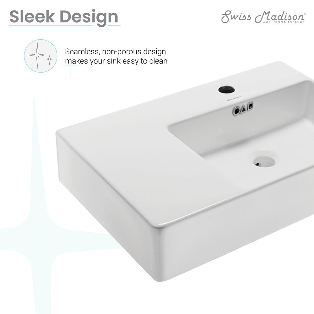 Swiss Madison St. Tropez 24" Rectangle Wall-Mounted Sink with Right Side Faucet Mount