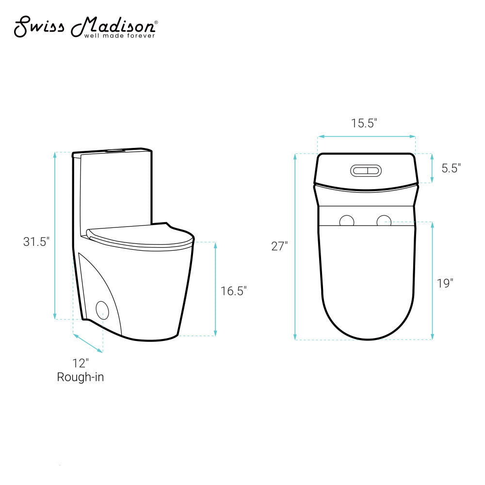 Swiss Madison St. Tropez One-Piece Elongated Toilet Vortex Dual-Flush 1.1/1.6 gpf with Smart Seat Bidet Option 2