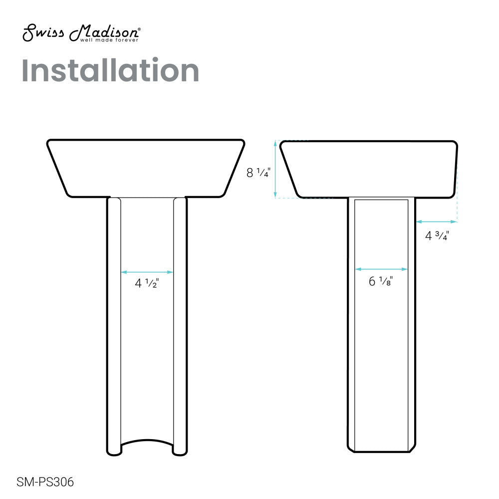 Swiss Madison Sublime Two-Piece Glossy White Ceramic Rectangular Pedestal Sink