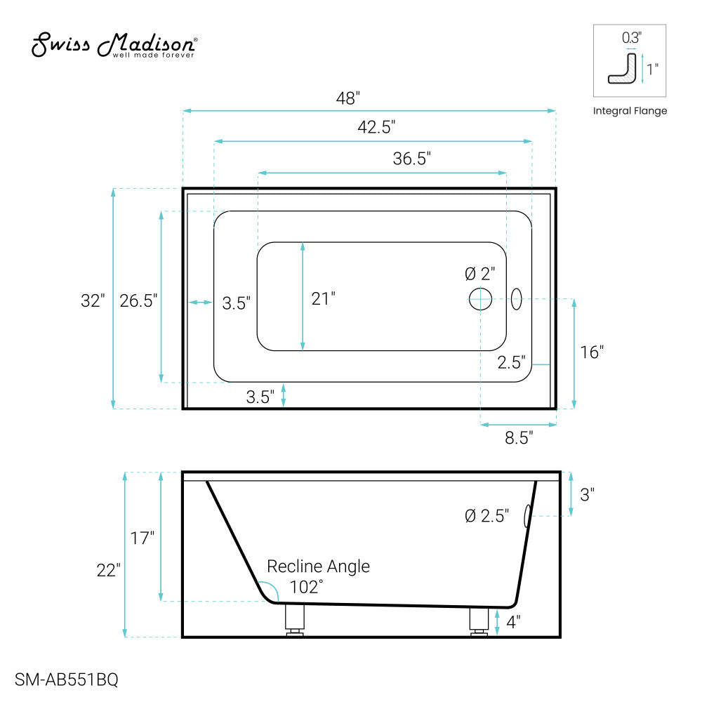 Swiss Madison Voltaire 48" x 32" Right-Hand Drain Alcove Bathtub with Apron in Bisque