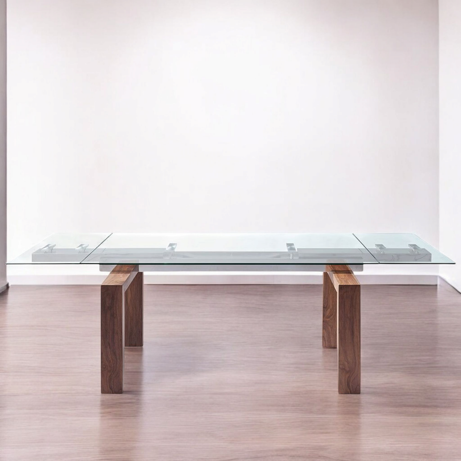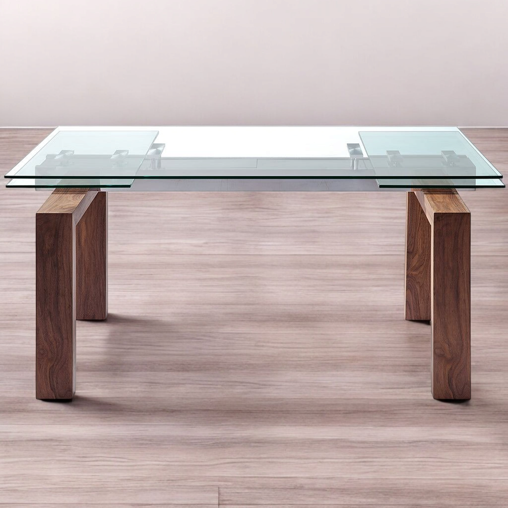 Tabselect Glass Top Extendable Dining Table With Wooden Legs