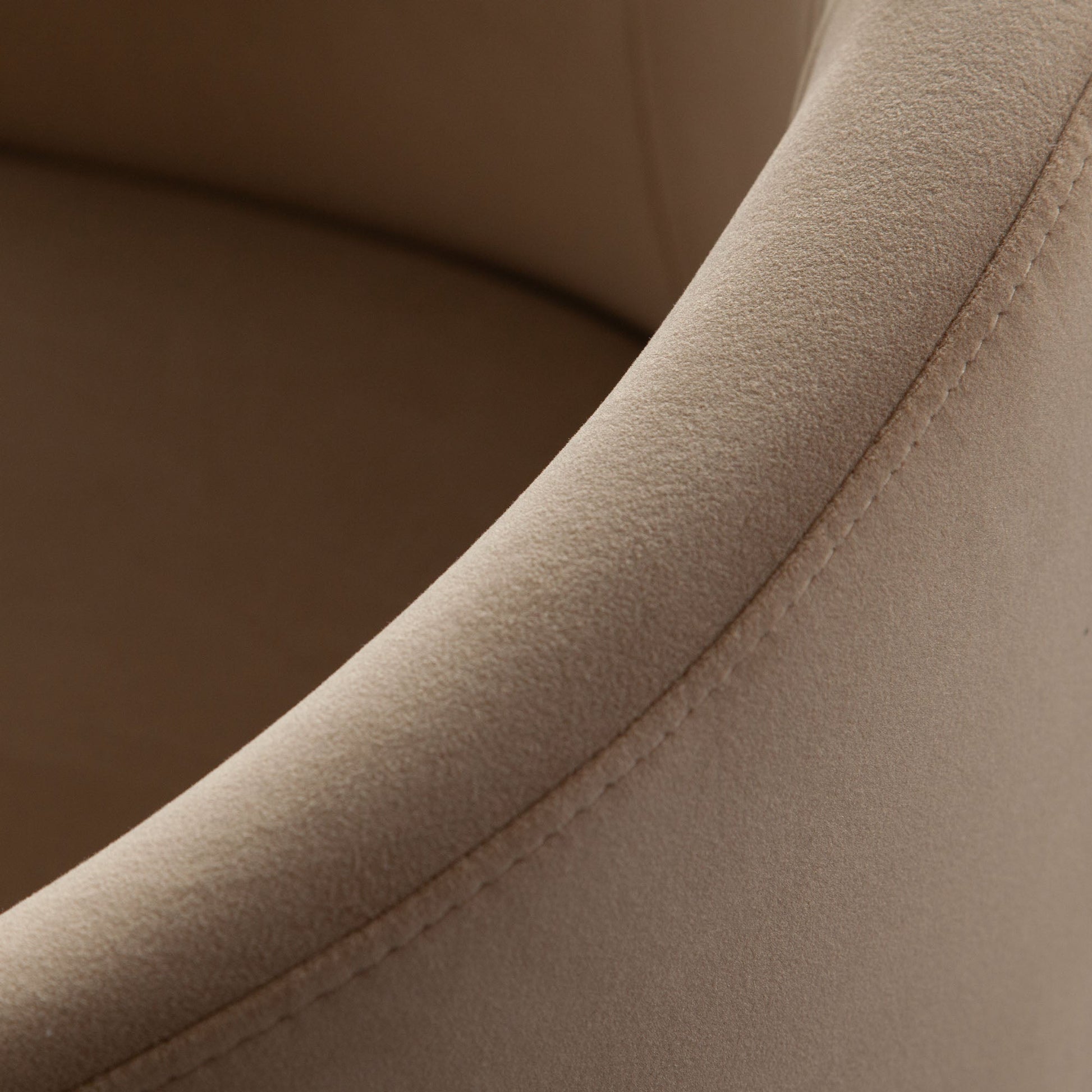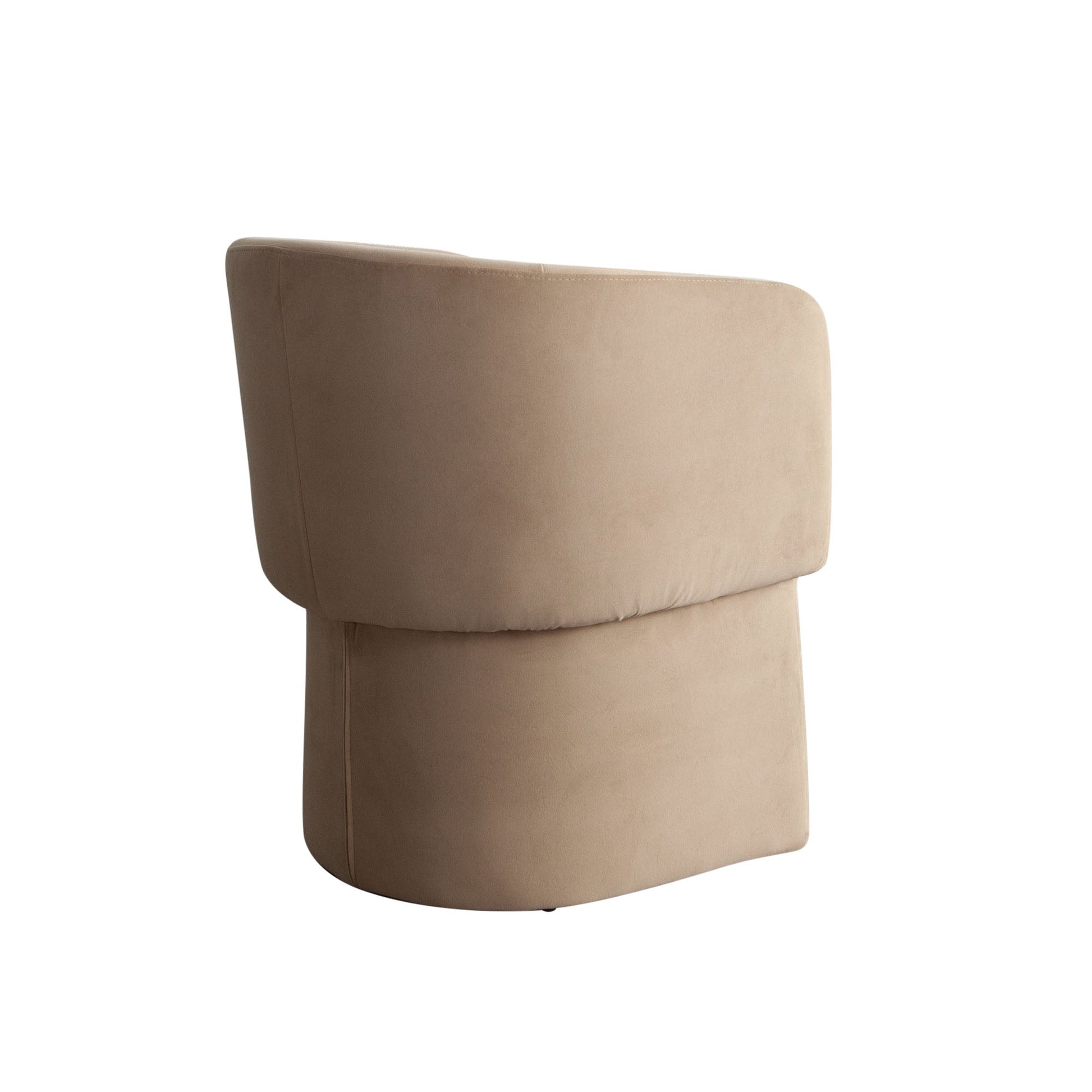 The Tess Dining Chair by Diamond Sofa offers an pedestal type design with barrel chair look. With its slightly sloping arm at 27 Inches at the front of the chair, it easily can be tucked away under table apron. The Tess Chair is offered in Camel Performance Velvet or Elite Ivory Polyester fabric. Packaged 1/Chair per Box. Seat Height is 18 Inches.