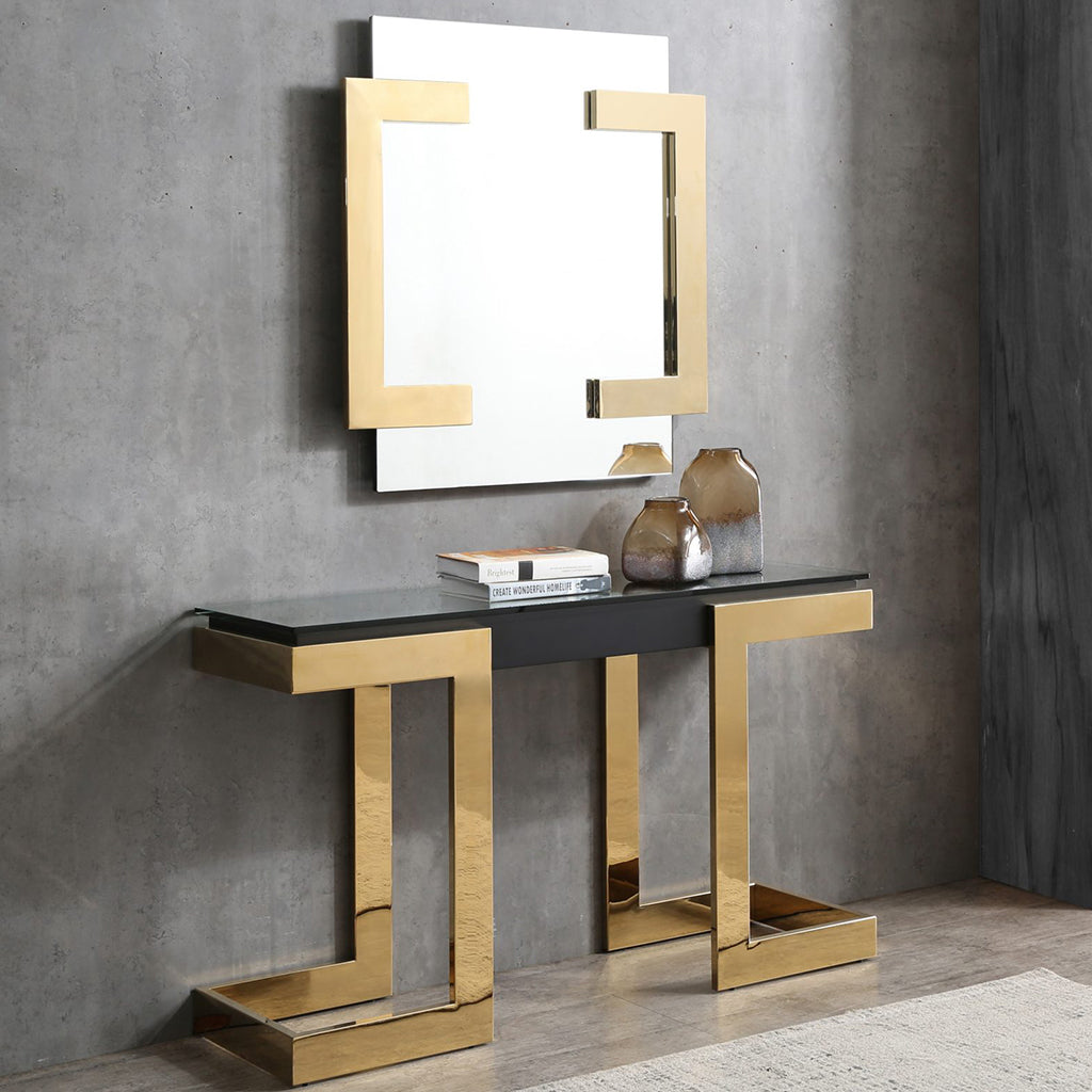 Perfect for showing off your reflection, this square mirror is a great option for an accent that blends form and function. Crafted from polished gold stainless steel frame, this is a great option for a pop of glamour in any room.