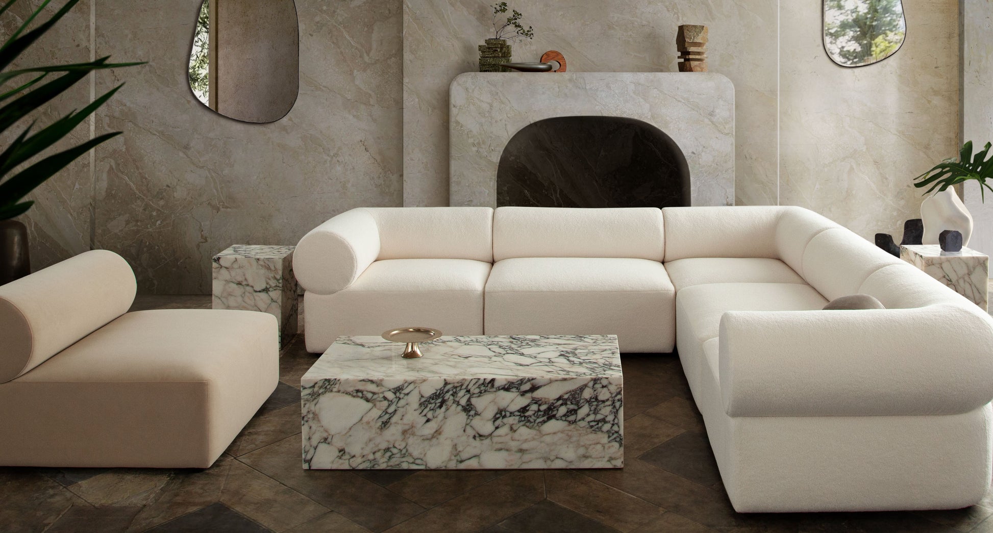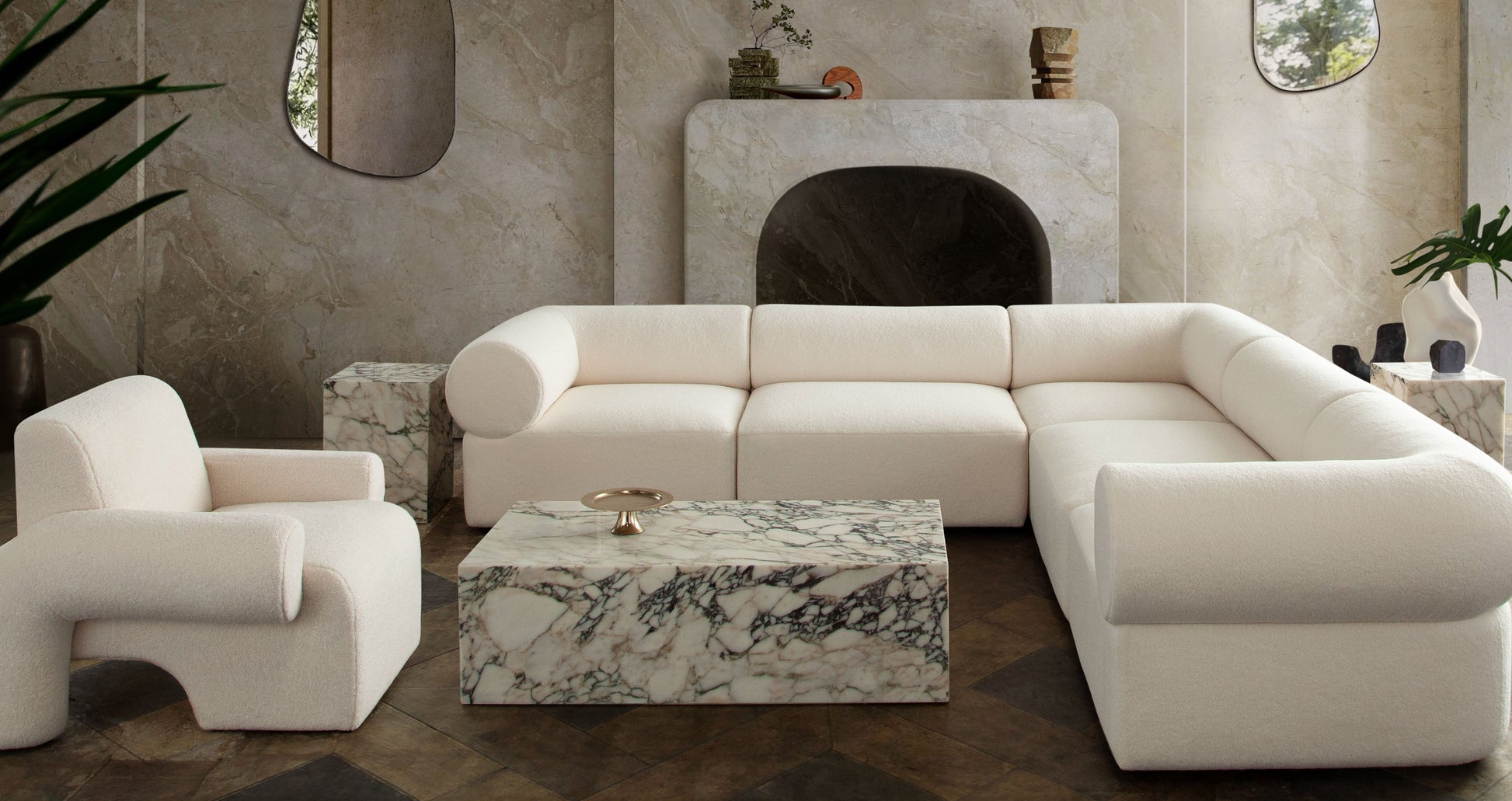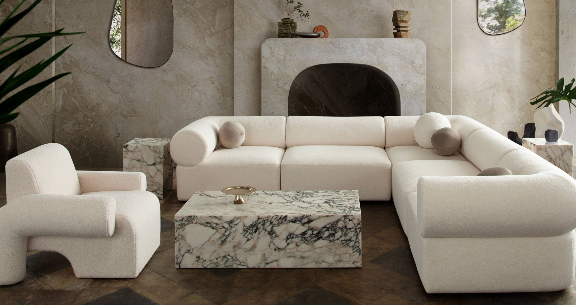 Zia 5PC Corner Sectional in Ivory Sherpa Fabric by Diamond Sofa